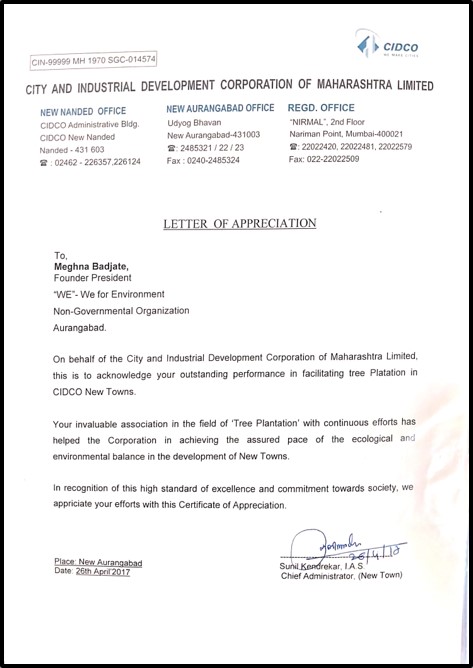 We for Environment has changed my definition of Joy. All friends with Single aim of Tree Plantation in simple words All Together; WE Aim for Plantations and Survival of trees in Aurangabad